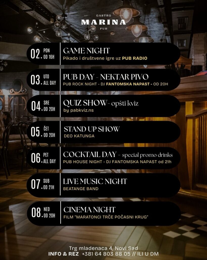DOBRO DOŠLI SVI LjUBITELjI DOBROG PIVA U gastro pub MARINA!