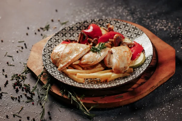Piletina, grilovano povrće, pomfrit