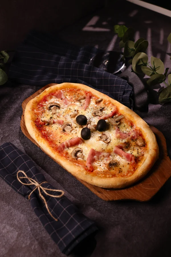 Pelat, sir, šunka, šampinjoni,origano, masline
